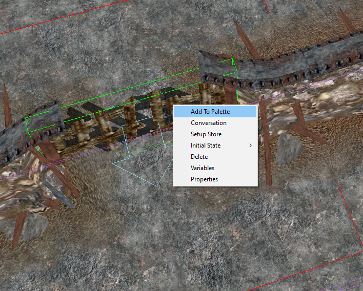 If you want to make doors destroyable in non-instanced area, then you will want those doors to respawn themselves after some time. To do this, set script sh_respdvere into Door's OnDeath event. Then set up other door characteristics such as hitpoints, automatically closing script, hardness or even trap and press OK. Once you have that, you need to make a blueprint from these doors. To do that, right click on the doors and select Add To Palette.