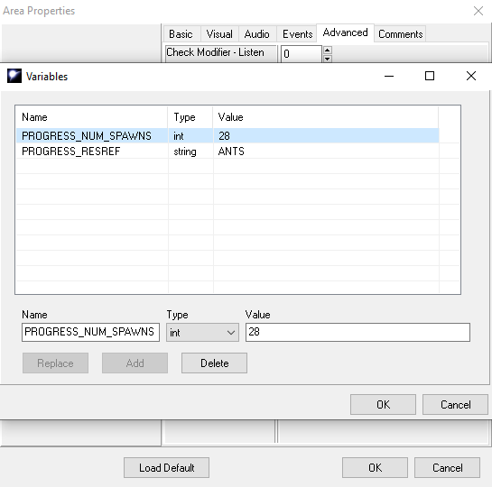 3. Add two variables to all areas that are part of the same dungeon. The variable values must be same for the same dungeon.